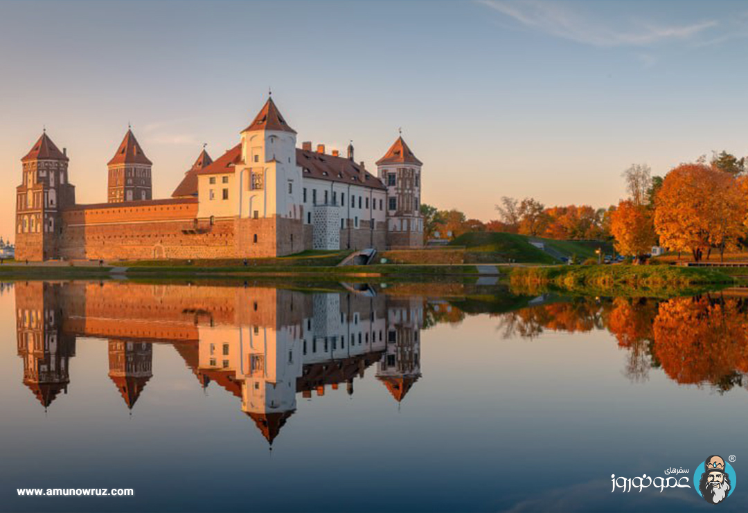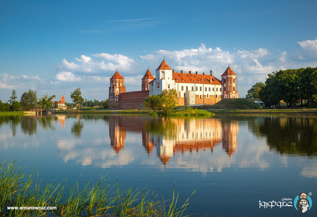 در واقع اونجا پارکی بود با یادمانی برای سربازان بلاروسی کشته شده در طول جنگ افغانستان، زمانی که همه اونها زیر پرچم شوروی میجنگیدند. بعد از گرفتن عکسهای یادگاری و گشت زدن توی پارک، برای شام به یک رستوران رفتم و با خوردن یک غذای محلی لذیذ به اسم ماچانکا روزم رو به پایان رسوندم. آخرین روز سفرم در بلاروس به دیدن یک قلعه تاریخی و یک موزه جذاب گذشت. قلعه میر یکی دیگه از جاذبههای دیدنی بلاروسه که در یونسکو به ثبت رسیده و 90 کیلومتر با مینسک فاصله داره، با محیطی تمیز و فوقالعاده زیبا. یه دریاچه مصنوعی بسیار زیبایی هم کنار قلعه بود که فضای زیبایی در محیط قلعه ایجاد کرده بود. مبلمان، چیدمان و صدای موسیقی که از قلعه به گوش میرسید، یکی از بهترین خاطرات من در سفر بلاروس شد. اونجا با زیباییهایی که داشت حس قلعههای قصههای پریان رو به من میداد، بعد از دیدن قلعه میر و گشتزدن در باغ گل استثنائیش راهی دیدن یکی از زیباترین و زندهترین موزههای بلاروس شدم، جایی با 40 کیلومتر فاصله از مینسک زیبا! دودوتکی، یک موزه فضای بازه که فرهنگ سنتی و روستایی بلاروس رو به خوبی اونجا میشه دید. چندین خونه روستایی، مدرسه، کلیسا، کارگاههای مشاغل سنتی مثل آهنگری، نونوایی، سفالگری و حتی آسیاب بادی فقط بخشی از جاذبه های خاص دودوتکی بودند. برای سوغات از فروشگاههای صنایعدستی دودوتکی چند تا مجسمه سرامیکی و چوبی خریدم و همینطور شیرینی و آبنباتهای خوشمزه بلاروسی. اینجا نقطهی پایانی سفر من به بلاروس بود. روز بعد با کولهباری از خاطرات و سوغات منحصربهفرد از سرزمین هزار قلعه به خونه برگشتم.