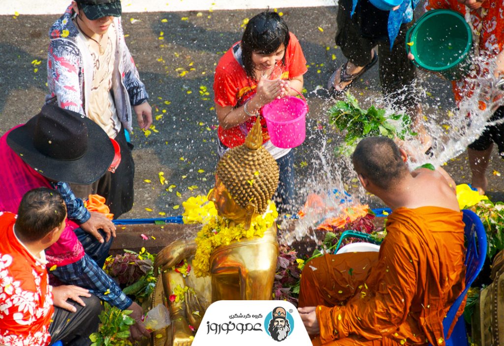 یکی از کارهای جذاب این جشن نیز ریختن آبی معطر توسط جوانها همراه طلب دعا به دست سالمندان است! همچنین تایلندیها در حین این جشن به دیدن بزرگان فامیل و دید و بازدیدهای خانوادگی میپردازند. در ادامه با سه روز جشن آنچه مردم تایلند در این روزها انجام میدهند بیشتر آشنا میشوید.